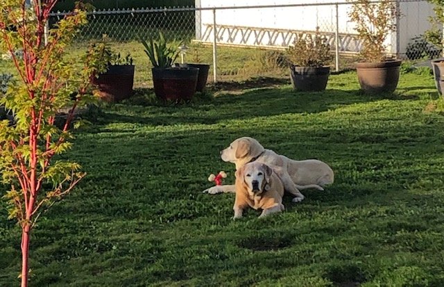 Sorrowful and anxious we waited for GDB to call and tell Peter they had found a dog. During this time, Aerie and Jewels became good friends. It was good for Peter and I to see them together because it exhibited that Aerie was ready for a more relaxing life with her puppy raiser mom, Susan. Peter had already made arrangements for when the time came Aerie and Susan